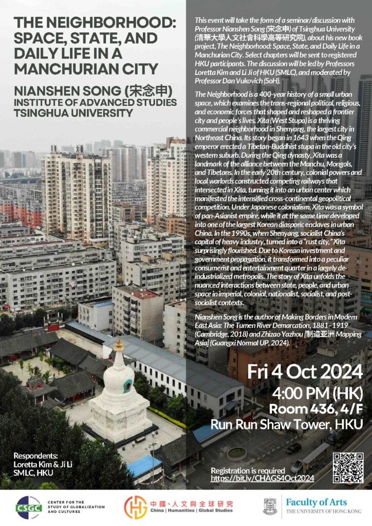 Roundtable discussion Speakers: Jacob Dreyer (卓睿), commissioning editor at Palgrave and an independent writer Pan Lu (潘律), Associate Professor, Dept. of Chinese History and Culture, PolyU Daniel Vukovich (胡德), Professor, Dept. of Comparative Literature, HKU Date: Wednesday, November 5, 2025Time: 4:00–6:00 pm (Hong Kong Time)Venue: Room 417, 4/F, The Jockey Club Tower, The University […]