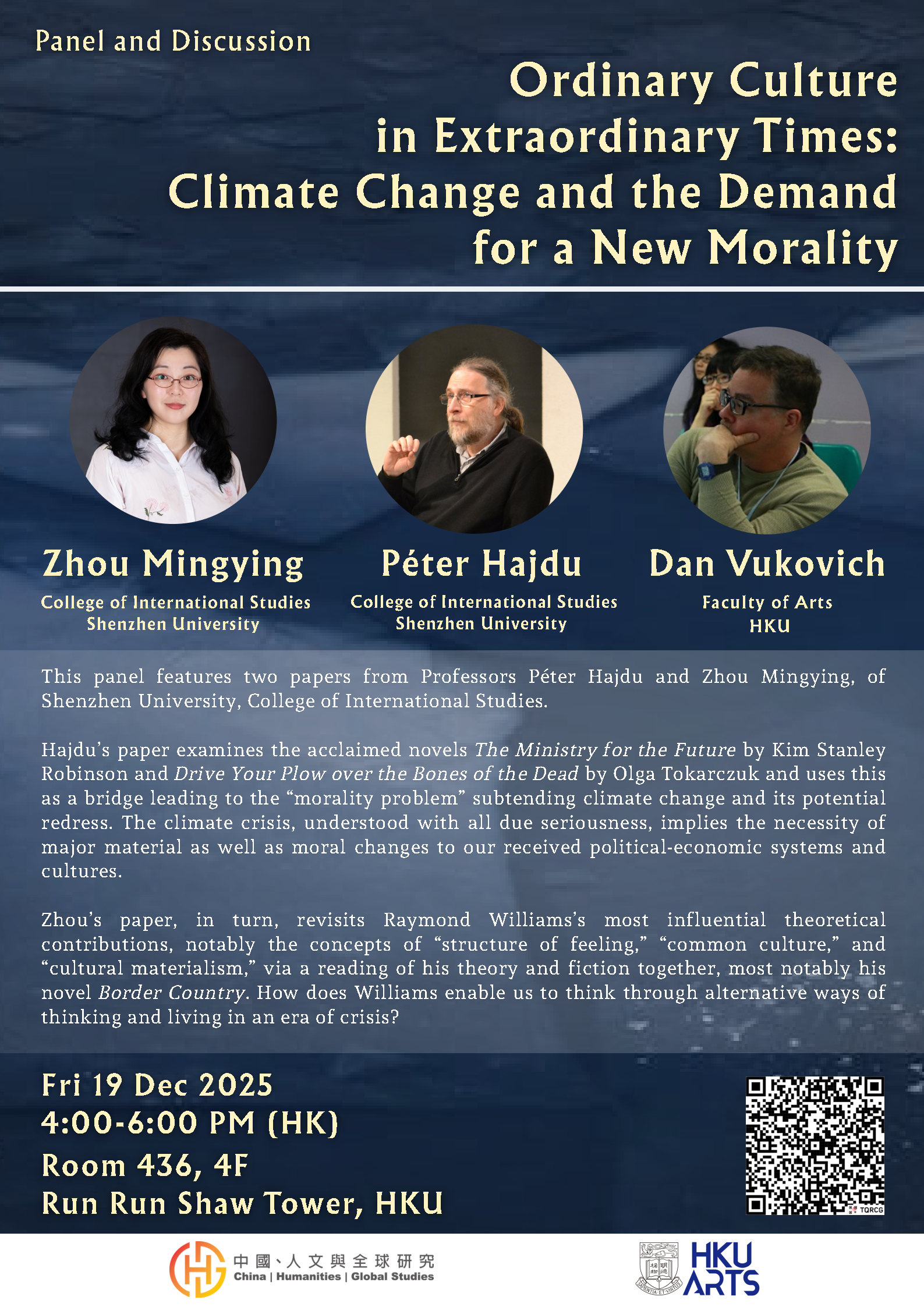 This hub takes the new times we live in seriously, beginning with the rise of China and the era of de-colonization, as well as the aftermath of the Soviet interregnum and thence the relative decline of the traditional Western powers, including their command of the media and knowledge-production. But the question remains as to how best to describe and understand the new global conjuncture or theatre. And how should we interpret and evaluate or theorize this new global and geo-political reality? This period is in flux even as it is also crisis-ridden. It behooves us to support and foster work, in the SAR and the mainland, that attempts to describe and know the distinctive shape of this new conjuncture in any of its concrete aspects. This is precisely the purpose of the hub and its future activities. And it is, as well, the traditional role and function of the humanities, criticism, and the interpretive social sciences.